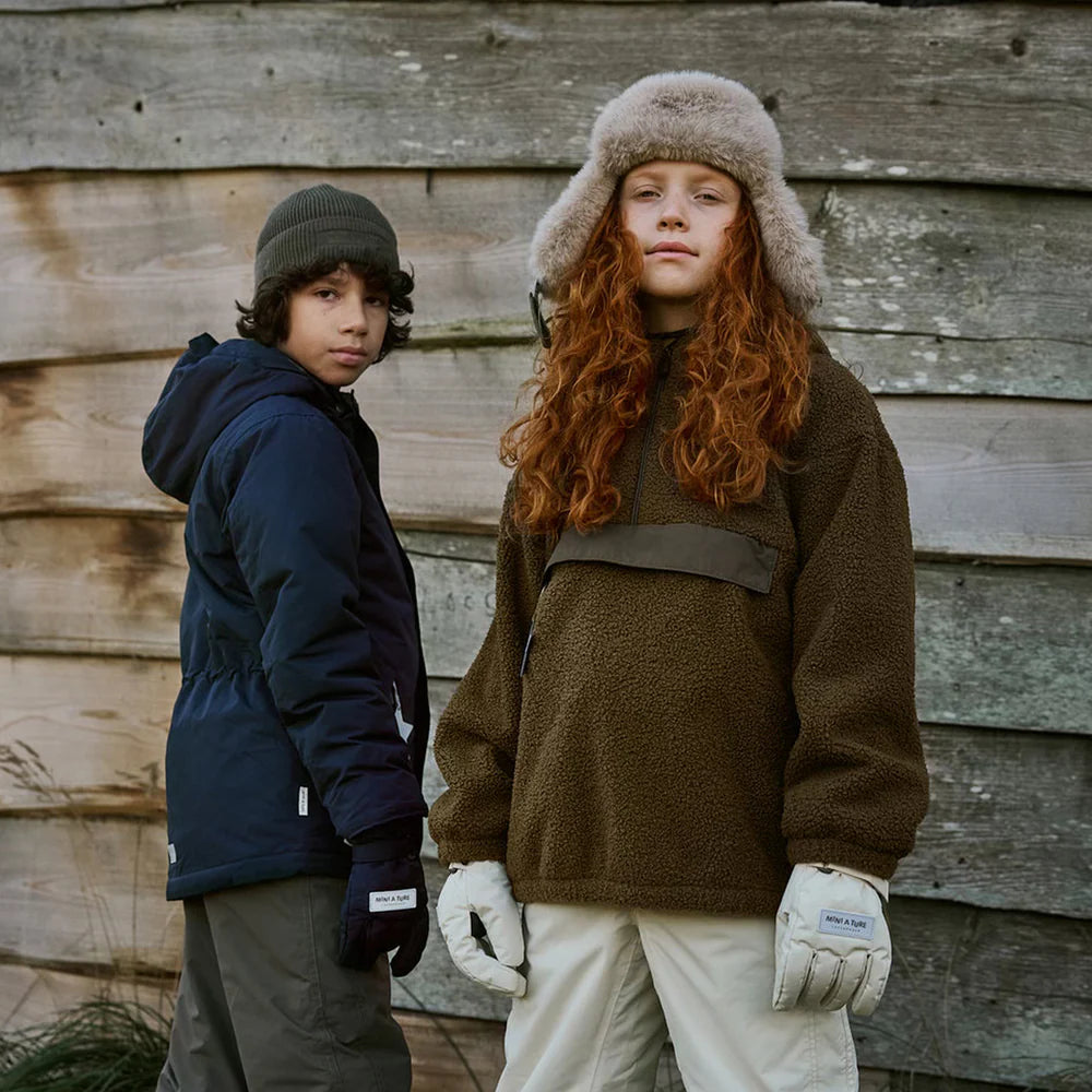 Anorak from MINI A TURE made from soft, waterproof teddy sherpa. Perfect for transitional weather and seasons. The anorak has a hidden front pocket, and elastic at the hem, making it possible to shape it. The anorak can be opened at the neck as well as on the side, which makes it easy to take on and off. Note that the material is waterproof, however the anorak does not have taped seams.