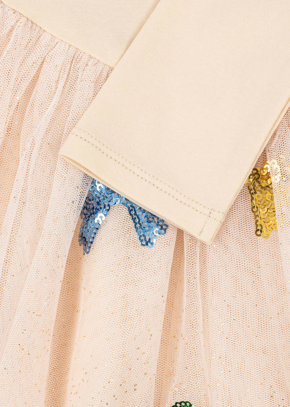 Soft ballerina dress designed with a fitted cotton top and a full skirt made with voluminous tulle layers. Lined with soft cotton.