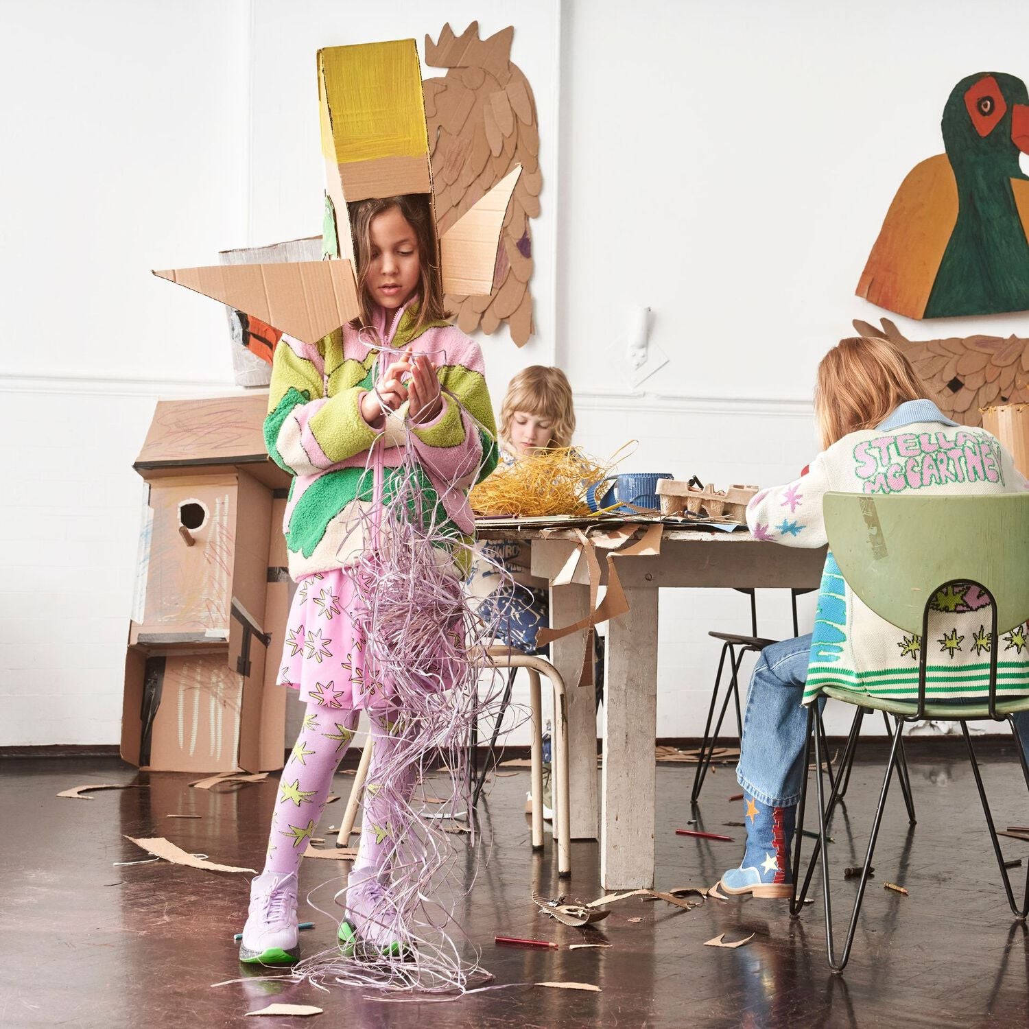 Pretty pink stars dress for girls by British designer Stella McCartney. Made from soft viscose with an all-over star in pink and yellow printed pattern. It has a long sleeve with an elasticated cuff. The pretty dress has a flared skirt with dual side seam pockets and fastens with zip on the front.