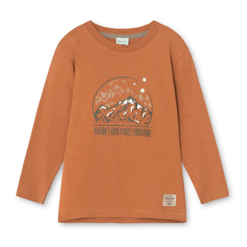 Long-sleeve t-shirt with hand drawn print or logo print from MINI A TURE. Made from soft, organic cotton, this t-shirt is GOTS certified and perfect for layering in the colder months or on its own for late summer and early autumn dressing.
