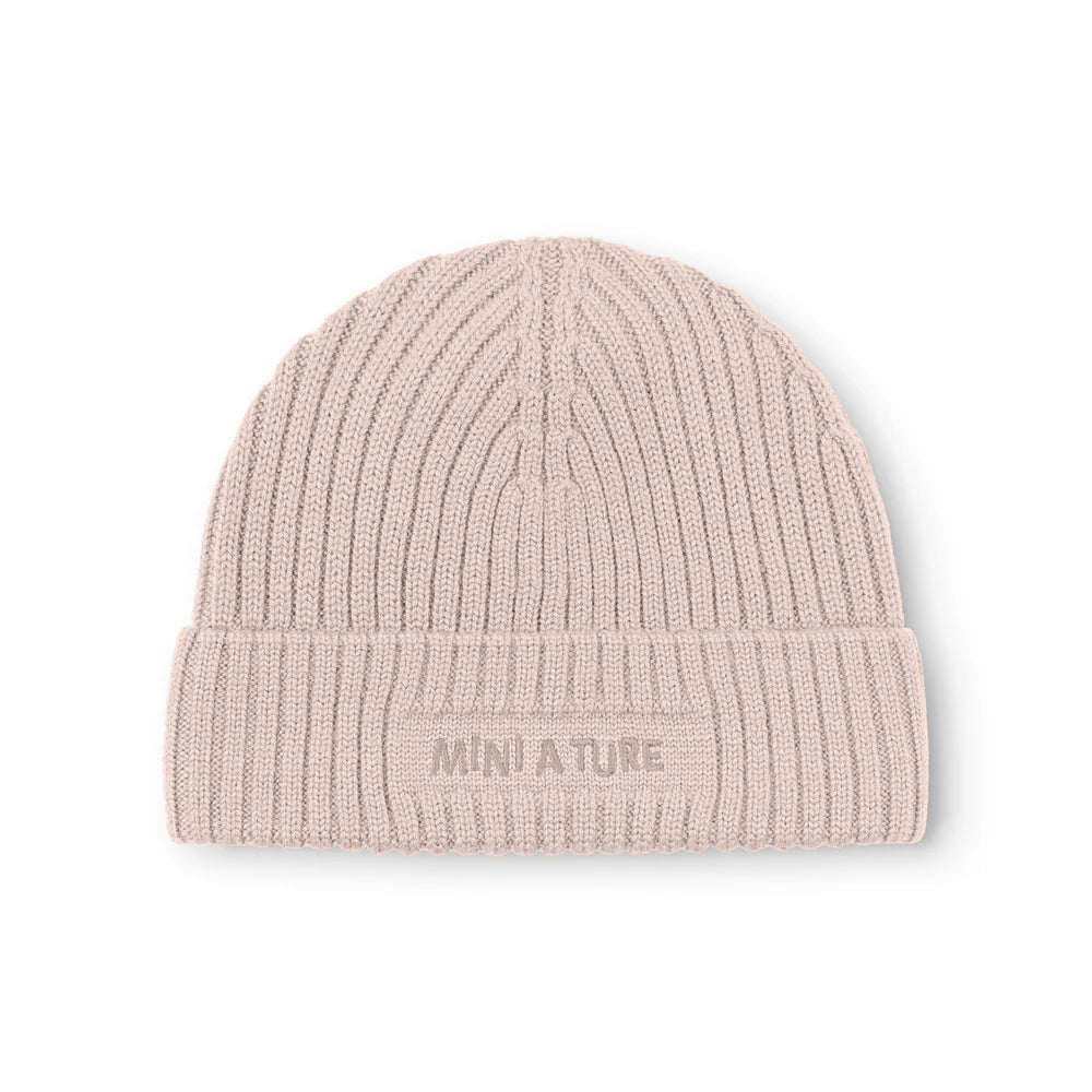 Ribbed, knitted beanie from MINI A TURE in a classic shape with fold-up made from soft merino wool. The beanie comes with a soft fleece lining under the fold-up adding extra warmth and comfort, and an embroidered MINI A TURE logo in the front.