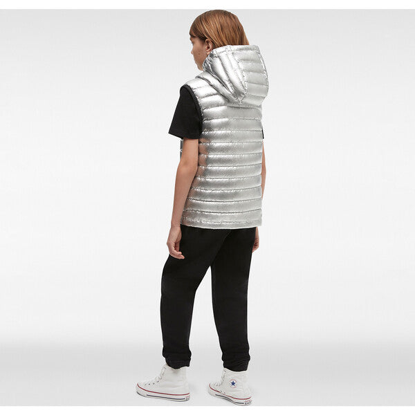 Moose Knuckles Kids Air Down Vest With Zip Pockets - Metallic Silver