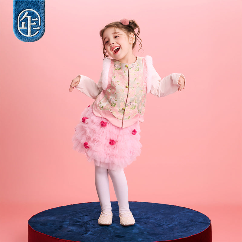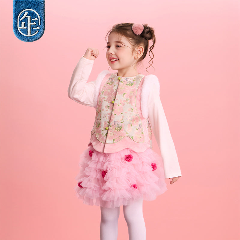 >Nian 年衣 华年小景中式马甲 - 粉绿