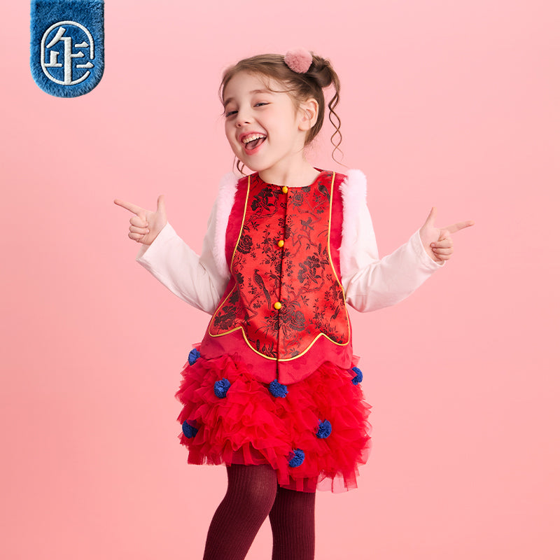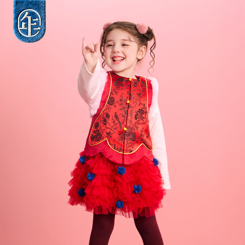 >Nian 年衣 华年小景中式马甲 - 年衣红