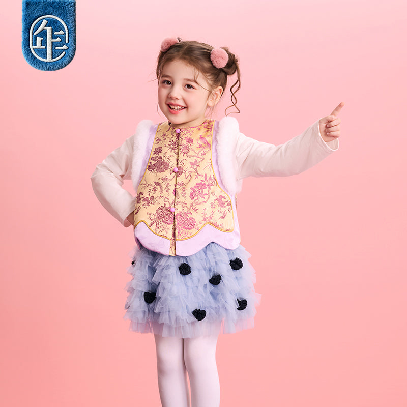 >Nian 年衣 华年小景中式马甲 - 杏仁黄
