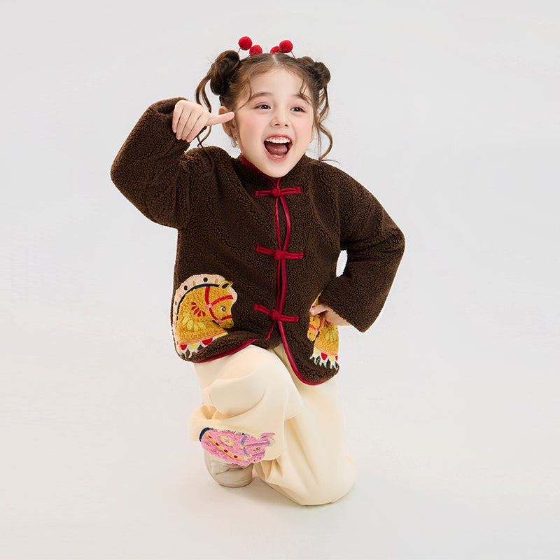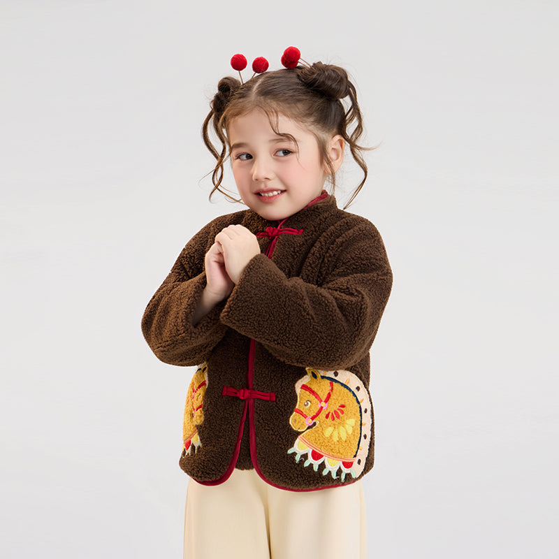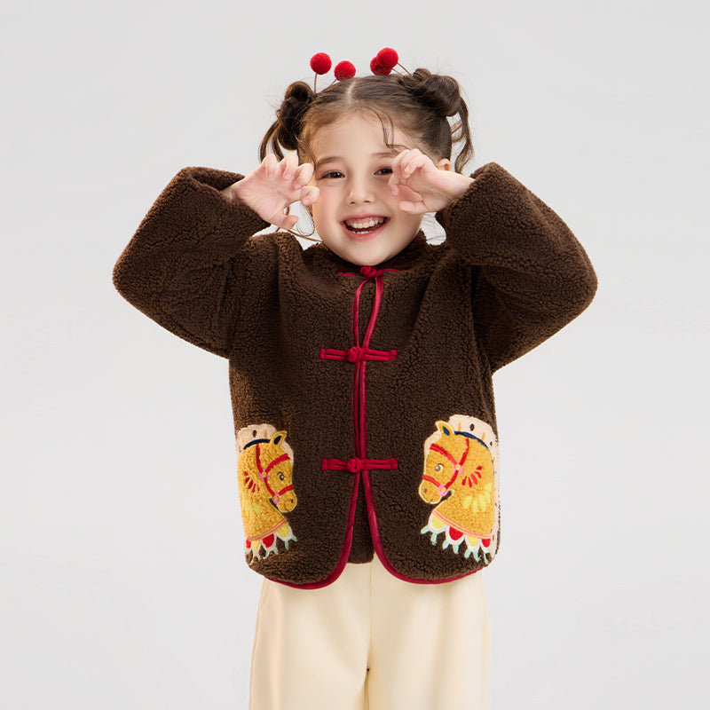 >Nian 年衣 喜乐戏马加绒外套 - 岩石棕
