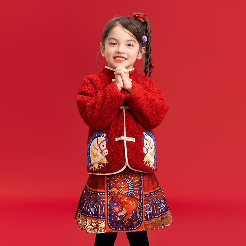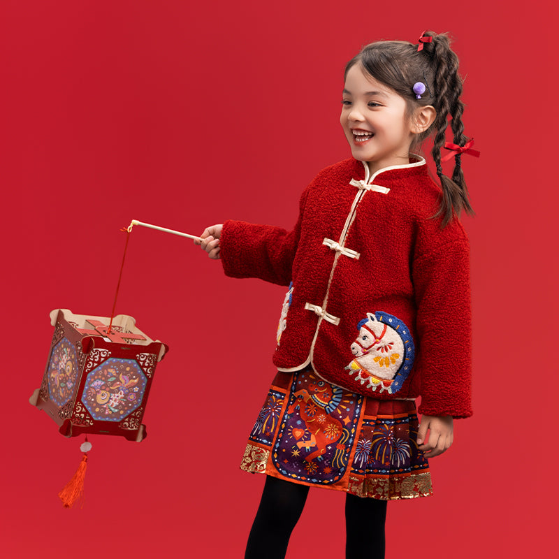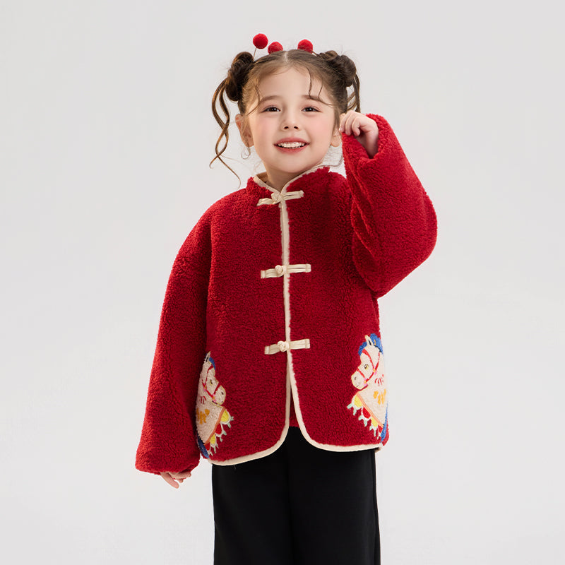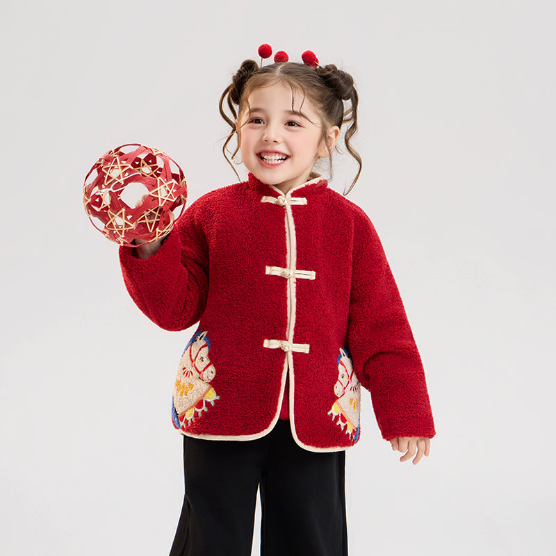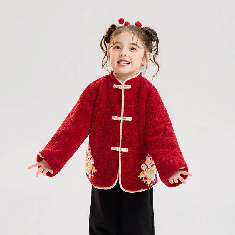 >Nian 年衣 喜乐戏马加绒外套 - 年衣红