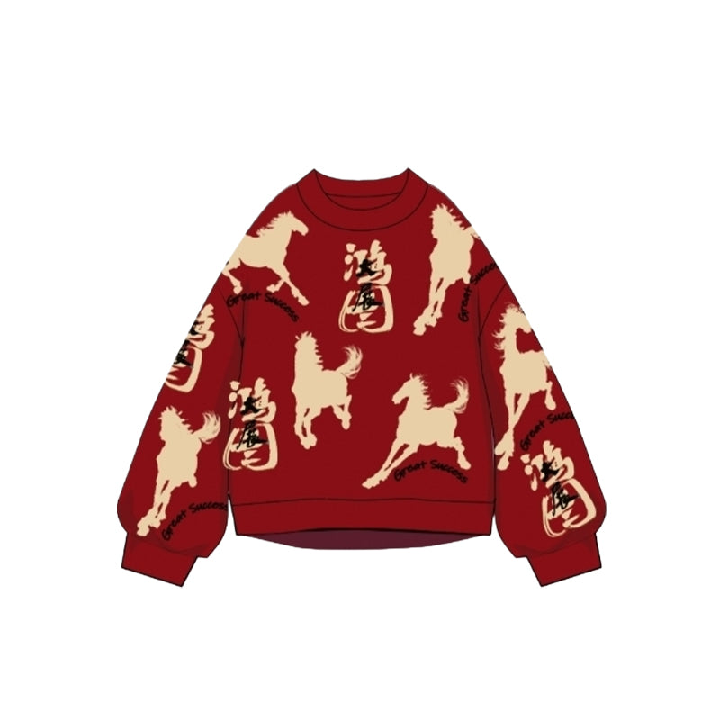 >Nian 年衣 成人亲子款 鸿图群奔毛衣 - 年衣红