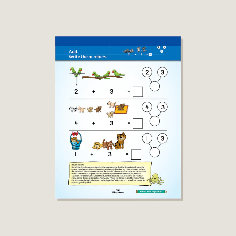 Textbooks develop essential math concepts and basic reasoning skills in a fun and engaging way. Lessons are guided by focused learning objectives, exercises reinforce new knowledge, and reviews assess student learning. Textbooks include Math at Home tear-out sheets and detailed teaching notes. Features & Components: