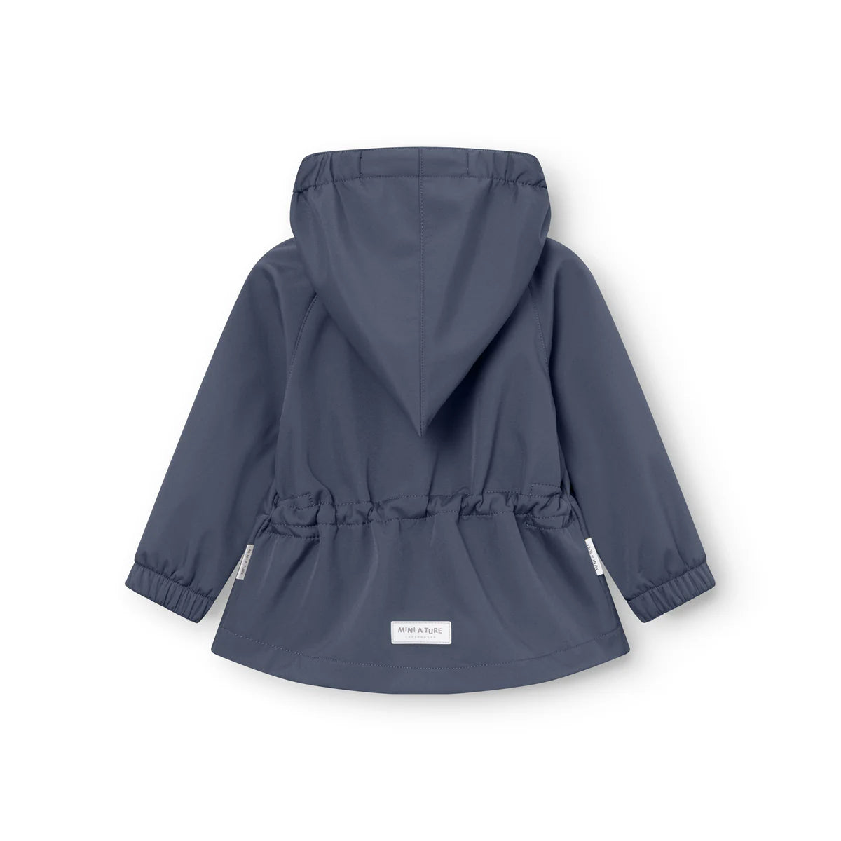 Softshell jacket in iconic MINI A TURE design. The jacket has a detachable, pointed hood with snap buttons, a front chest pocket and a zipper at the front left side. MINI A TURE reflex star is placed in the pocket, and the jacket has a small reflex logo at the back. The softshell material consists of three different layers gathered into one fabric – an outer material, a membrane that makes the fabric windproof and water repellent, and a backing in soft fleece. The jacket does not have taped seams, but the material is highly water repellent.